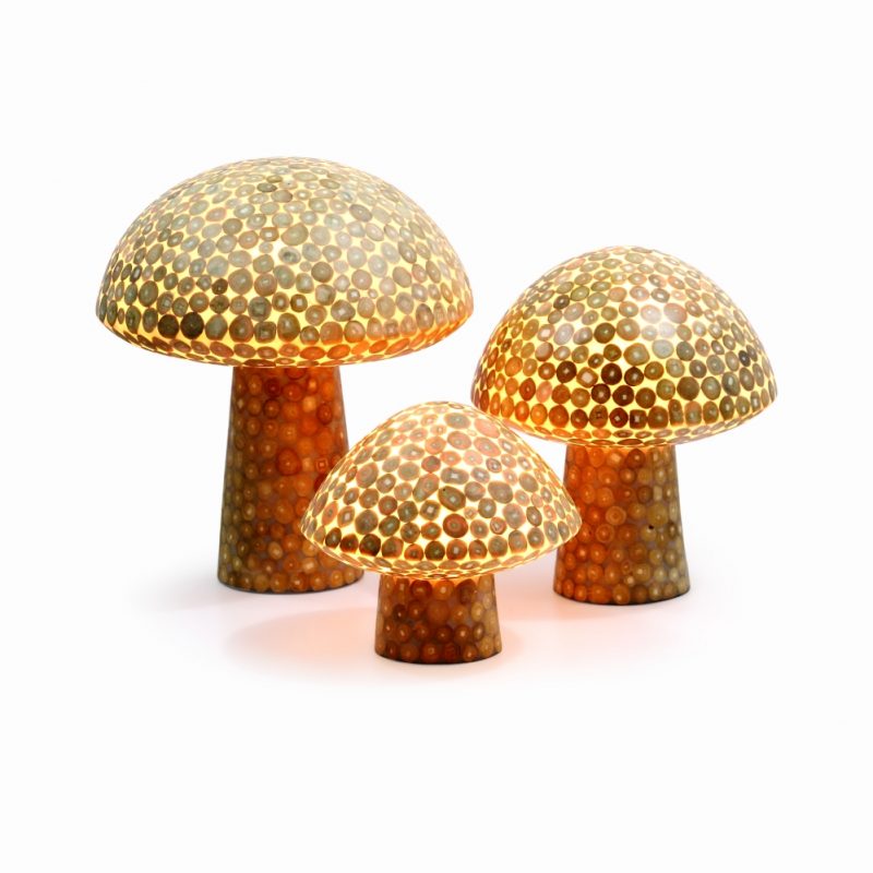 Decorate your life style and home. Let mushrooms grow in your yard. Three choices of mushrooms : pasta, teak and pitrit. Certificated with outdoor component (IP 44 standard). Also available in Large and Small (set of 3) , and available for Indoor usage